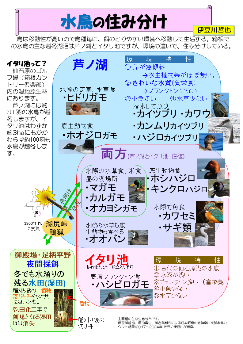 ■水鳥の住み分け(芦ノ湖とイタリ池)【絵解き解説】